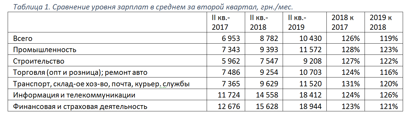 Для того, чтобы оценить темпы роста средних официальных зарплат за квартал, в следующей таблице приведены сравнительные данные по соотношению между уровнями средних за второй квартал зарплат в 2019, 2018 и 2017 годах.